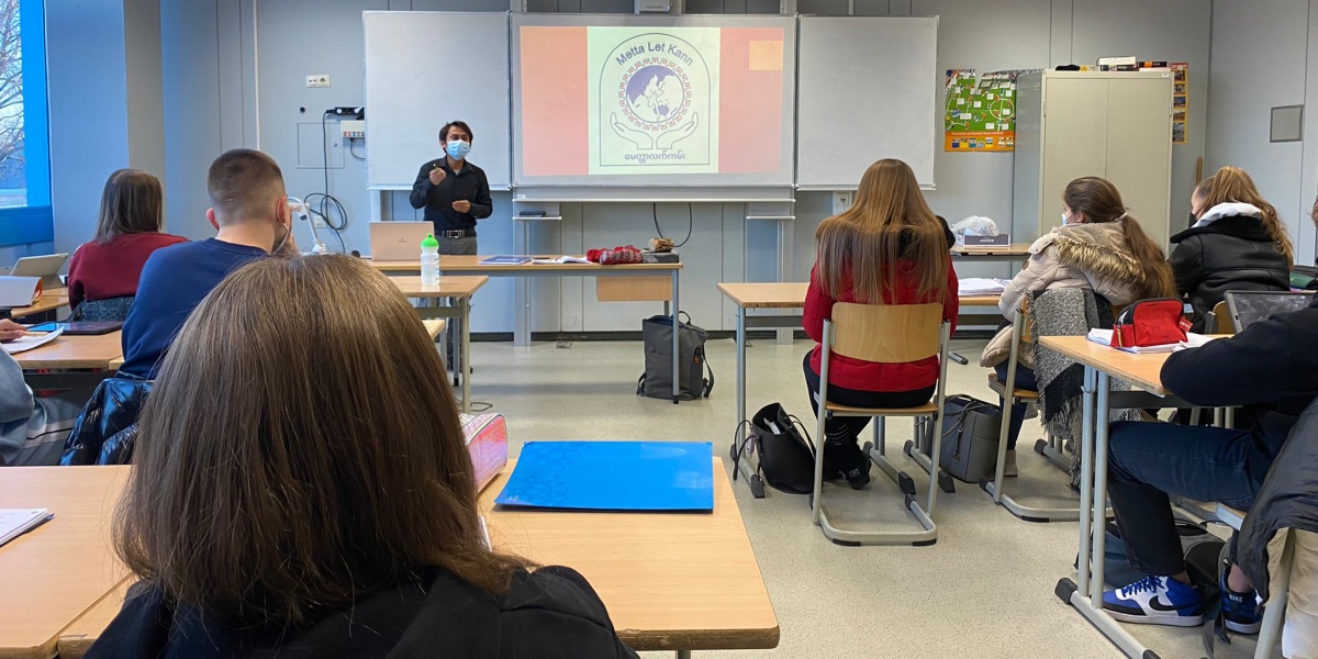 Die Vorträge, die er zu seinem Land und der Situation in unserer Schule hielt, machten die Schülerinnen und Schüler sehr betroffen. Gleichzeitig waren die Schülerinnen und Schüler besonders davon beeindruckt, dass es Herrn Oo gelungen ist, so viel in seinem Land zu bewegen und für mehr Gerechtigkeit zu kämpfen. Der Militärputsch hat den Menschen in Myanmar jedoch jede Freiheit geraubt und nun leben sie in Angst und Gefahr. Ein Schüler äußerte: Jetzt weiß ich, wie gut es mir in Deutschland geht.