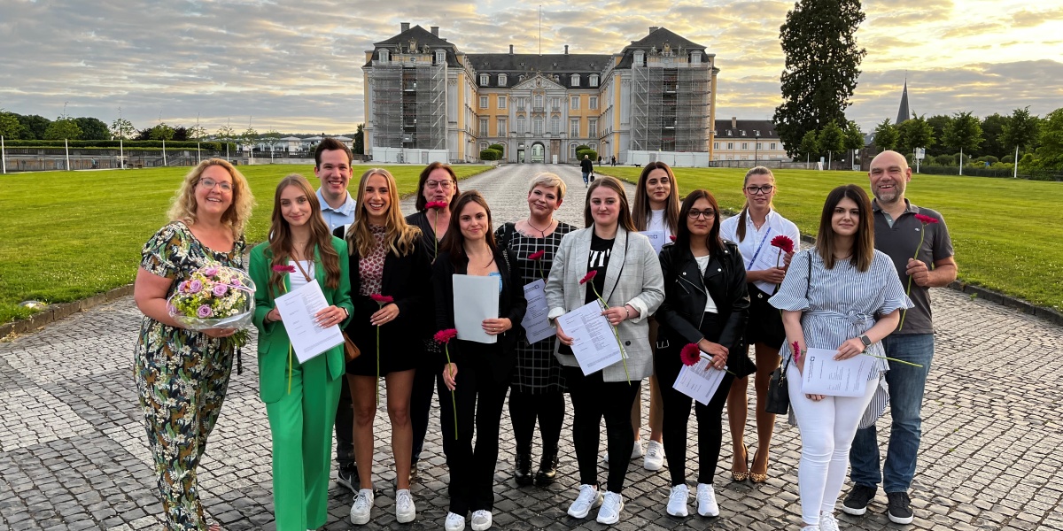 Vor wunderschöner Kulisse nahmen am 10. Juni 2022 die Schüler:innen der MF119 ihre Abschlusszeugnisse entgegen. Die Lehrer:innen Frau Bendler, Frau Block und Herr Esser freuen sich mit der Klasse und verabschiedeten sie mit einem lachenden und einem weinenden Auge und guten Wünschen für die Zukunft.