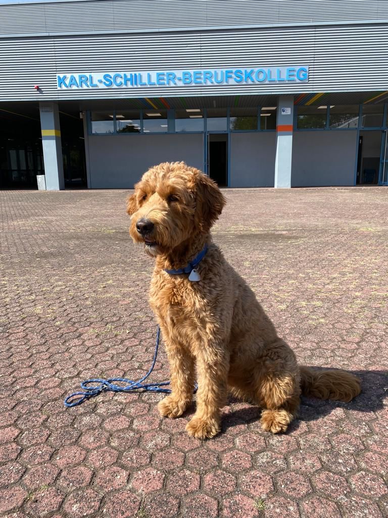 Hanni, unser dreijähriger Schulhund, wird uns alle fortan begleiten.