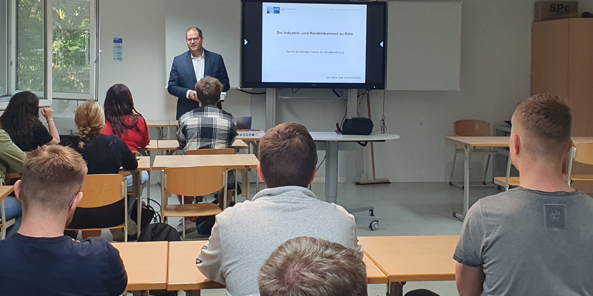Herr Wirths, Ausbildungsberater der IKH Köln, hat unsere Schülerinnen und Schüler mit einer aussagekräftigen und sehr anschaulichen Präsentation sowie Praxisbeispielen über ihre Rechte und Pflichten während der Berufsausbildung sowie den Ablauf der Ausbildung umfassend informiert. Im Anschluss an den Vortrag beantwortete Herr Wirths individuelle Fragen einzelner Schülerinnen und Schüler.
